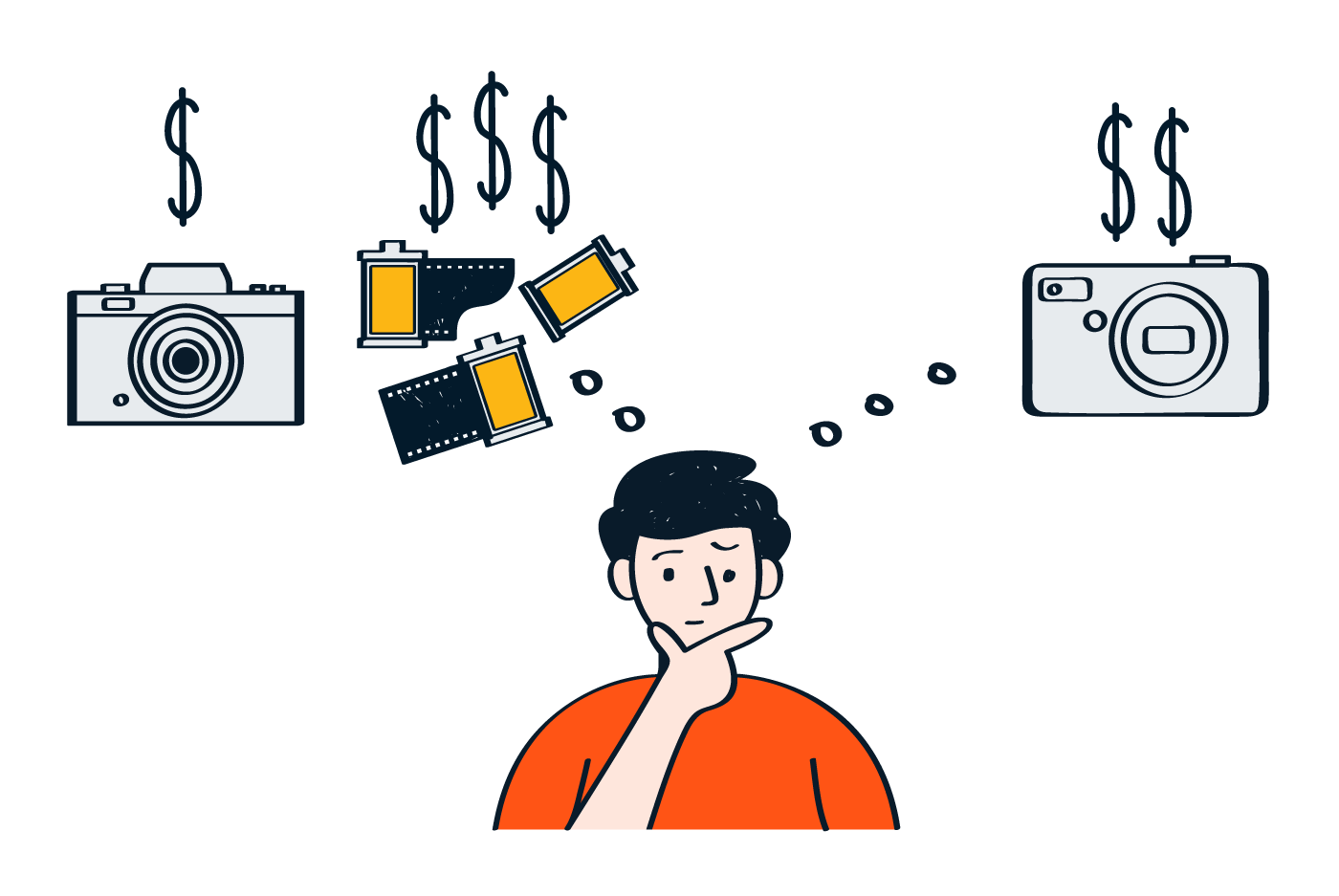 In simple terms: You buy some film. You take 36 or so photos with family and friends. Then, you go buy more film. And repeat.