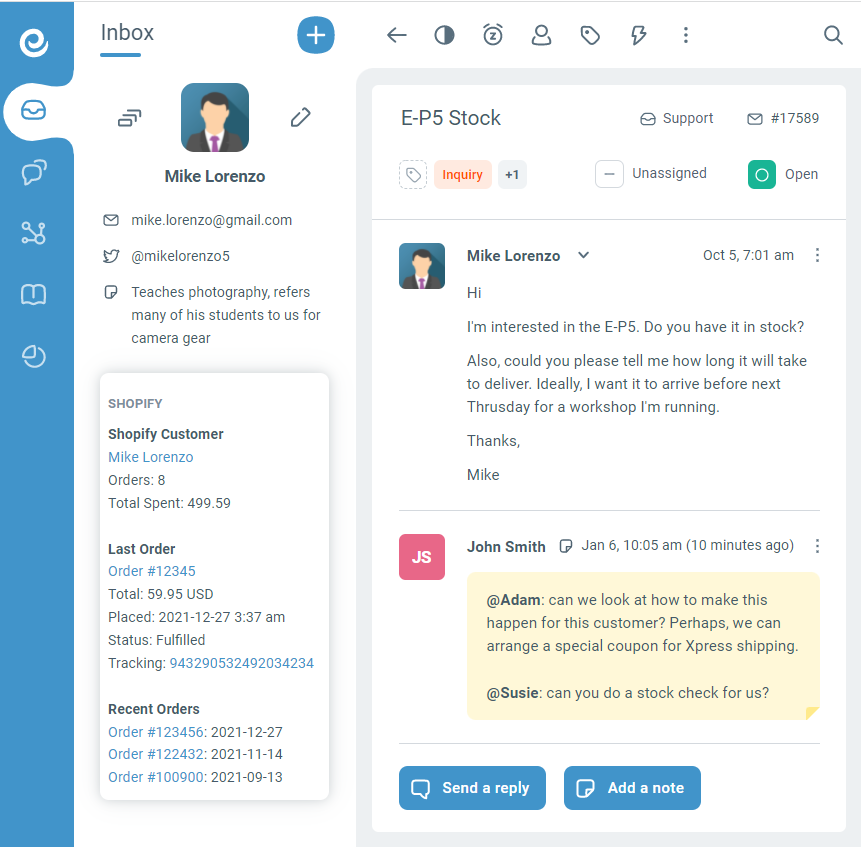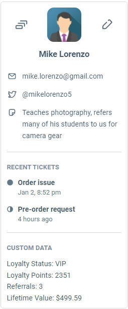 - Automatically bring in relevant data from your CRM, quickly view customer history, and easily search for customer conversations.