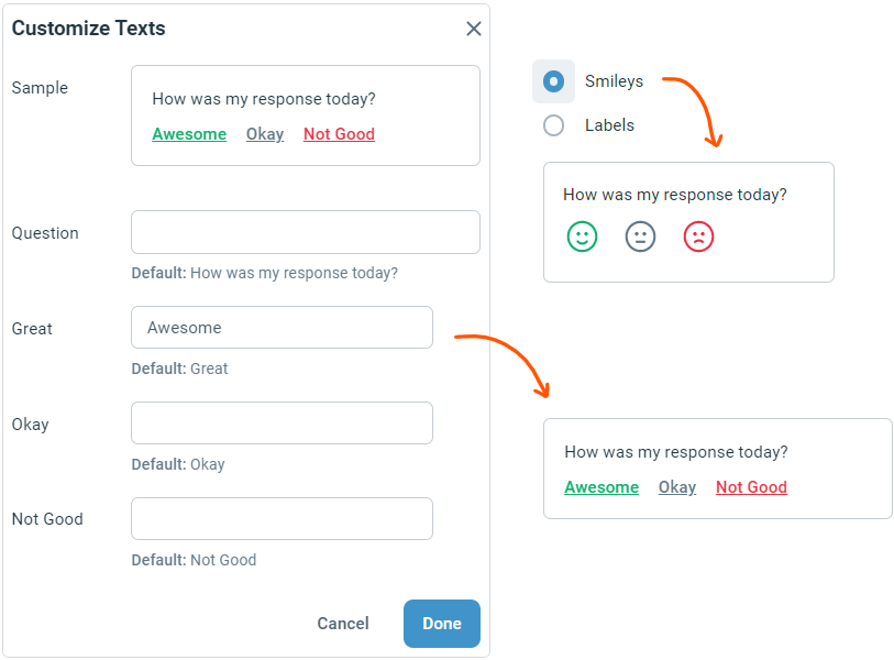 - Customize the surveys with emojis or text based answers to fit your needs.