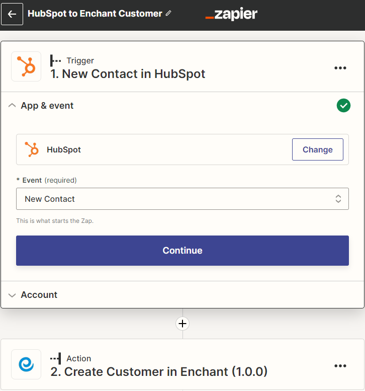 Once Zapier app is installed, you can create Zaps to connect HubSpot with Enchant in your Zapier account to automate the desired workflows.