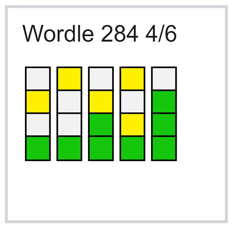 One of the things people love about Wordle is the shareable grids. At first people were posting on social media or group chats saying “Wordle in three.”