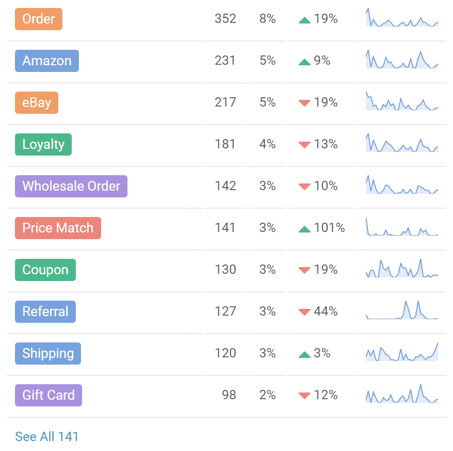 Reporting. See which queries are pending, and which are being worked on. Enchant provides built in tools that track volumes and trends of customer queries over a period of time. This helps you visualize your team members’ performance, and spot areas for improvement. If you’re getting a particular lot of requests on specific days, you might want to allocate more people power on those days. If you notice a spike in returns due to damaged items, you might want to consider packing them more robustly for shipping.