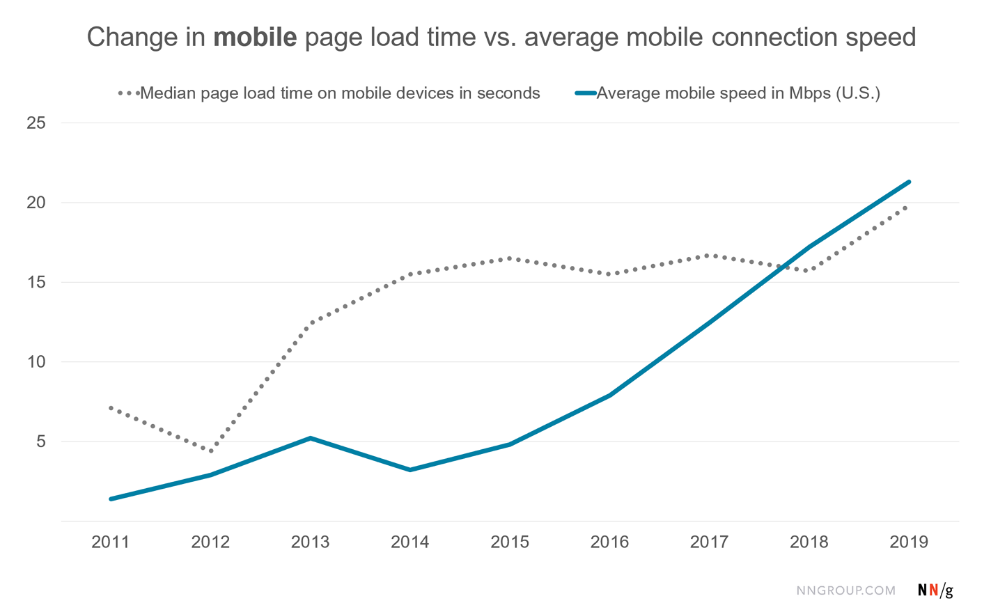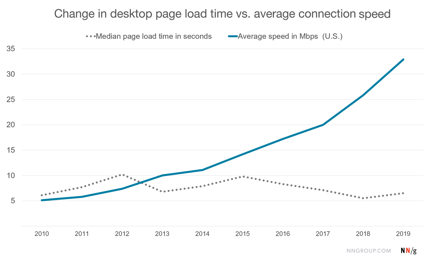 Take a look at this chart, it compares desktop page load times with Internet connection speeds (source):