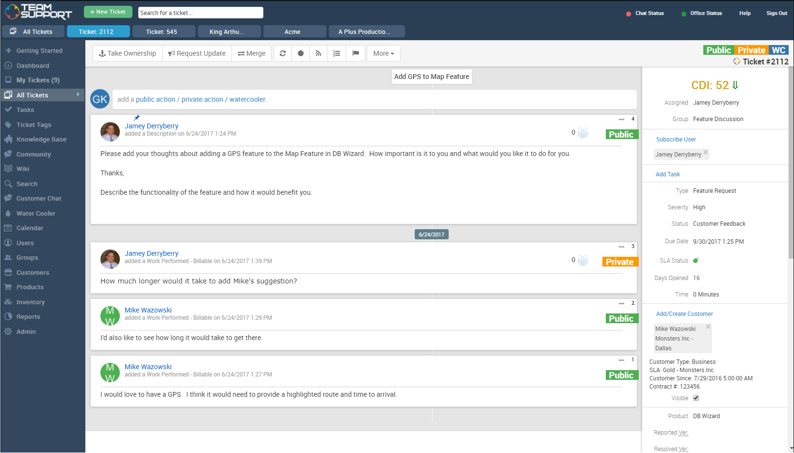 TeamSupport is a B2B-focused tool that goes beyond traditional support functionalities, doubling as a valuable tool for internal project management and team communication. It offers various communication channels enabling clients to reach out through email, call, or chat, while also allowing them to provide satisfaction ratings for improved service evaluation.