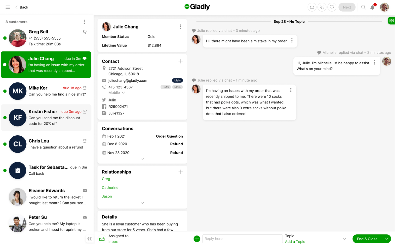 When it comes to receiving and answering phone calls, Gladly's native voice feature is known to cause service disruption due to connection problems, reported by many of their customers. It might be something to watch out for, if you're looking for a higher level of reliability.